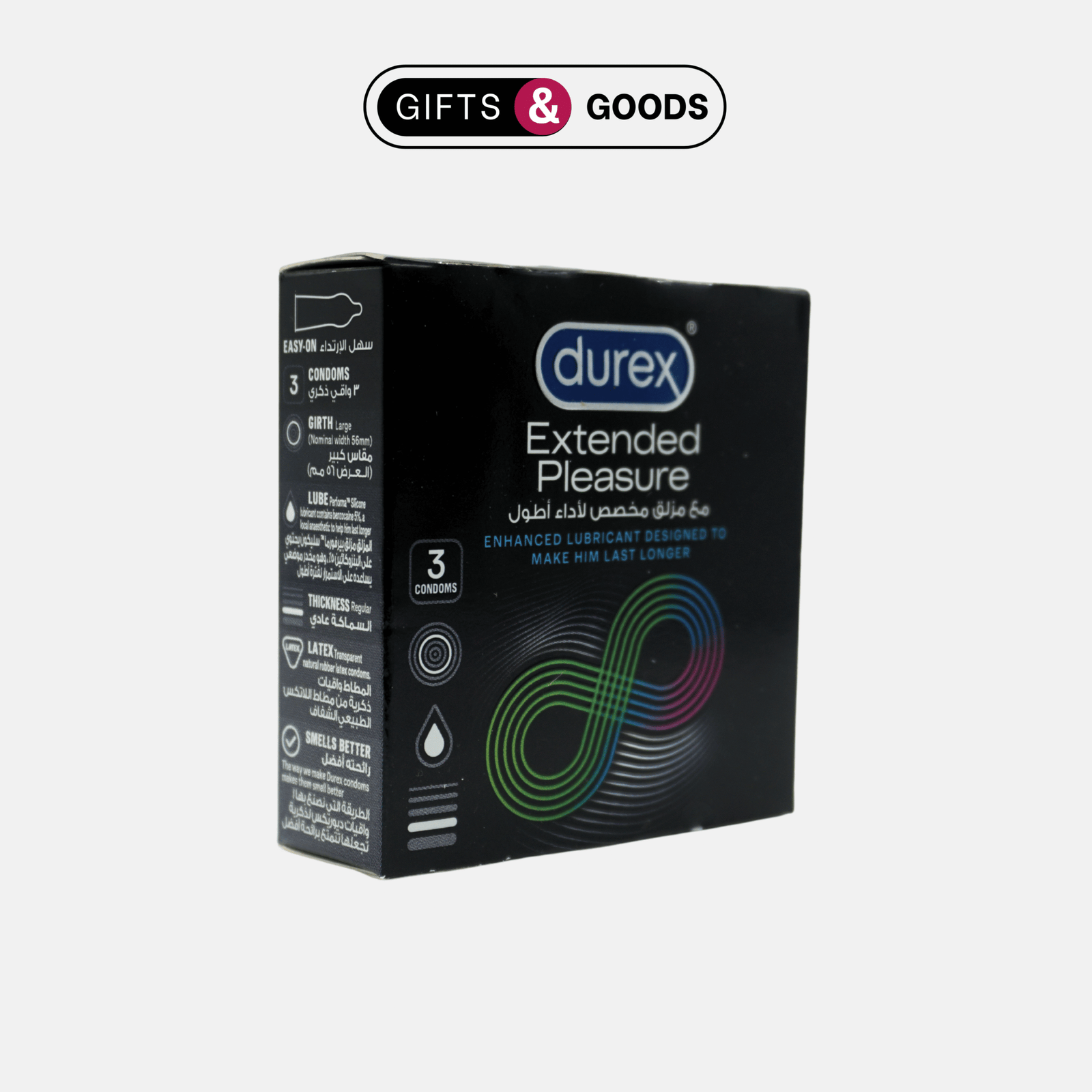 Experience longer lasting pleasure with Durex Extended Pleasure Condoms. These pack of 3 condoms are designed to help you last longer in the bedroom, giving you and your partner an enhanced intimate experience. Made with high-quality materials and trusted by experts, these condoms provide both protection and pleasure. Elevate your sexual experience with Durex Extended Pleasure Condoms, trusted by experts and made with high-quality materials. Designed to help you last longer in the bedroom for heightened intimacy, this pack of 3 provides both protection and pleasure. Extended Pleasure condoms use a special lube which contains benzocaine inside the condom which helps him to delay climax and prolong excitement for longer-lasting sex. The special way we make Durex Extended Pleasure means they smell better so there are no unpleasant distractions, you can relax and enjoy,
